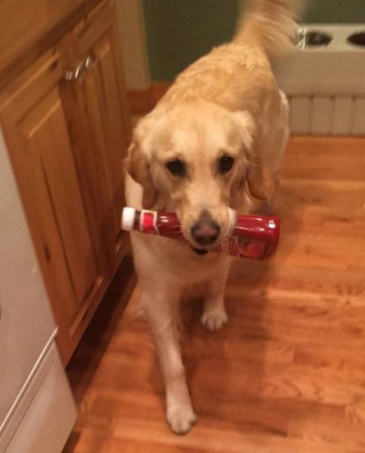 어느 날, 보호자 트래비스 씨는 집에서 시간을 보내고 있었습니다. 그러던 중 스텔라가 갑자기 케첩 한 병을 물고 나타났는데요.
