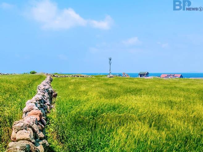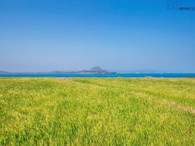 파도 소리보다 바람에 흔들리는 보리 이삭 소리가 더 가까이 들리는 계절. 이름부터 싱그러운 풍경, 청보리가 섬 전체를 물들이고 있다.