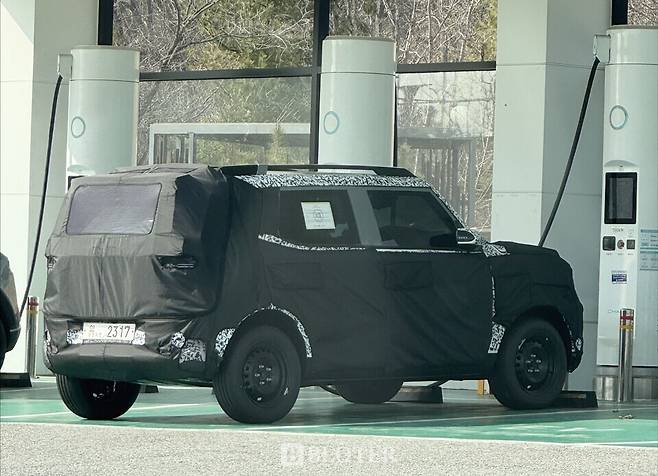 현대자동차가 개발 중인 소형 전기 스포츠유틸리티차량(SUV)이 위장막으로 가려진 채 경기도 광주시 경기광주휴게소 내 채비 전기차 충전소에서 포착됐다. 27일 현재 해당 차량은 2027년 현대차가 인도 전략형 차량으로 출시할 가능성이 높은 것으로 나타났다.