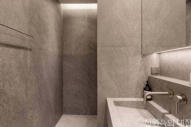 테라스 정원을 통해 들어오는 자연의 싱그러움이 공간 전체로 퍼져 나간다. 자연을 닮은 자재와 견고한 구조, 정제된 라인들로 오랜 시간 질리지 않을 보금자리를 완성했다.
