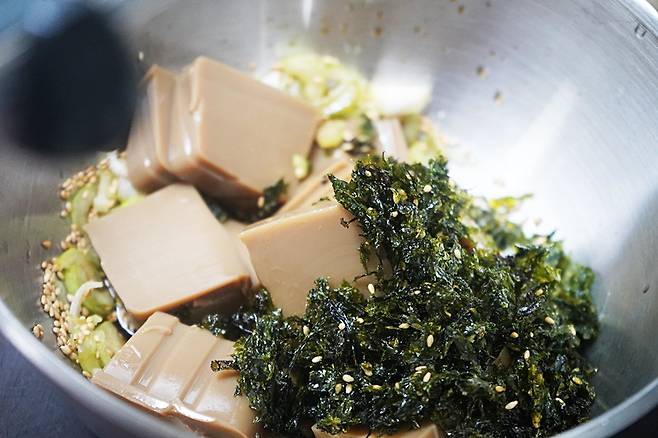 쯔유와 들기름을 활용한 도토리묵무침 영상을 보게 되었어요