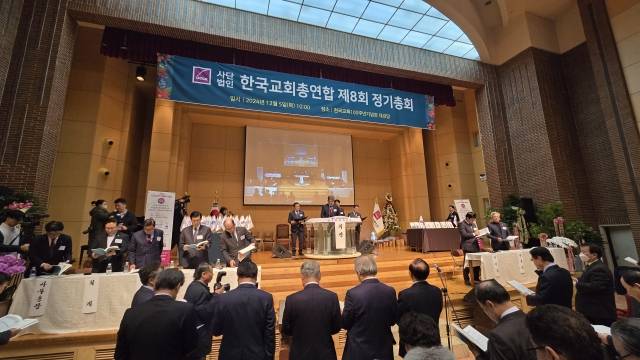 한국교회총연합(한교총·대표회장 김종혁 목사)이 5일 서울 종로 한국교회100주년기념관에서 제8회 정기총회를 열고 대한예수교장로회(예장) 합동 총회장 김종혁 목사를 대표회장에 추대하는 등 임원을 개선한 뒤 정관을 개정했다.