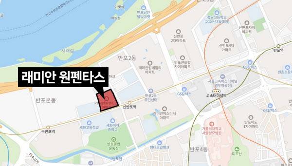 ‘래미안 원펜타스’는 지하 4층~지상 35층, 6개동, 총 641가구 규모 아파트다. 이 중 292가구를 일반분양한다. 서울에서 이른바 강남3구로 묶이는 서초구 한복판이면서, 지하철 9호선 신반포역과 맞닿아있는 초역세권이라 입지는 최상이라는 평가를 받는다. 강남·여의도 업무지구 출퇴근 여건이 편리하다. 북쪽으로 한강을 끼고 있긴 하지만 직접적으로 한강 조망이 가능한 세대는 거의 없다.