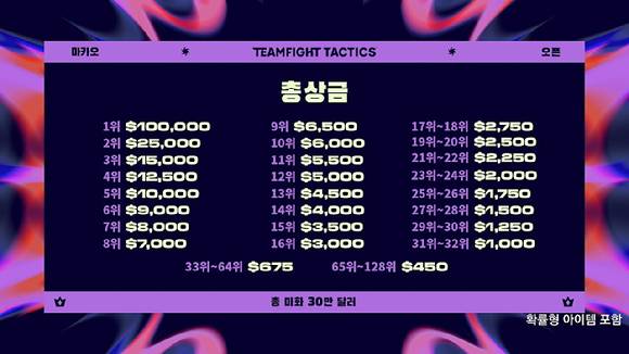 라이엇게임즈는 2024년 대미를 장식할 TFT 글로벌 오프라인 대회를 마카오에서 개최하기로 결정했다. 마카오 오픈은 12월 13일부터 15일까지 사흘 동안 진행되며 총 상금은 30만달러(약 4억원)이며 우승자에게는 10만달러(약 1억3500만원)의 상금이 주어진다.