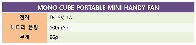 모노큐브 휴대용 미니 써큘 선풍기는 자그마한 박스에 담겨 있다. 박스 앞면과 옆면에는 제품 컬러 이미지가 인쇄되어 있어서 개봉 전에도 디자인을 쉽게 파악할 수 있다.
