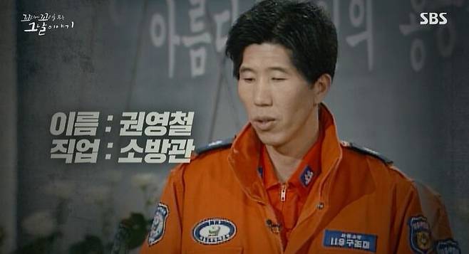 "소리 없는 눈물만 떨어질 뿐이지. 말 한마디 진짜 못했습니다. 그조차도 피해가 갈까 봐. 작업만 하는 거예요. 아무 말 없이." –권영철 소방관