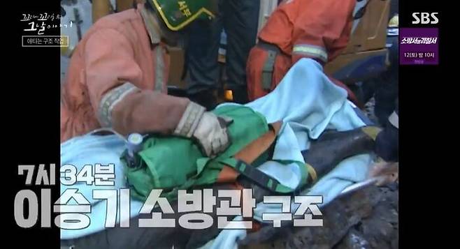 장비를 정신없이 해체하고 밖으로 밀어 올렸어. 오전 7시 34분. 매몰 3시간 23분만에 두번째 동료가 밖으로 나왔어. 그렇게 이승기 소방관이 구조됐어.