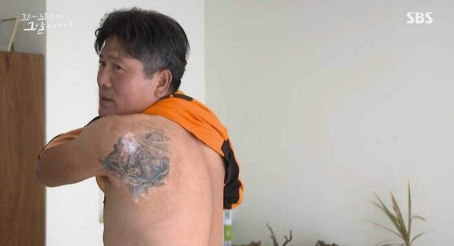 이성촌 소방관의 어깨에 문신이 하나 있어. 화재 현장에서 생긴 화상 흉터 위에 새긴거야.