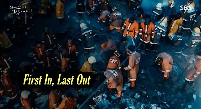 'First in, Last out'. 가장 먼저 들어가서 가장 나중에 나온다는 의미야. 그런 문구를 자기 몸에 새기고, 지금도 소방관이라는 직업에 대한 소명을 갖고 살아가고 있어.