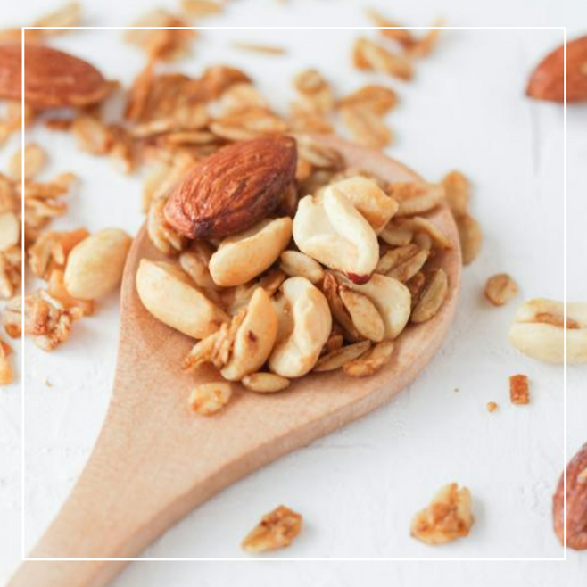 건강식 이미지로 유명하지만, 설탕, 꿀, 오일, 견과류가 첨가되어 칼로리가 높은 편입니다.