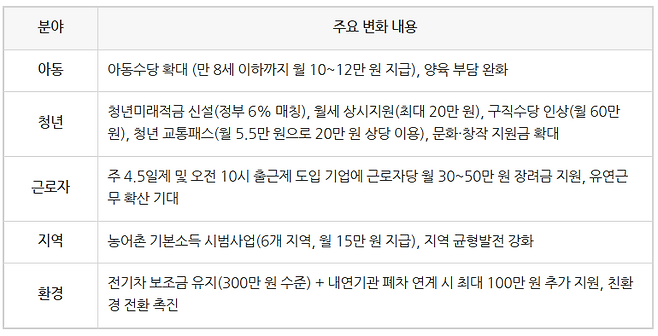 이번 변화는 단순히 금액이나 제도 개편을 넘어, ‘생활 전반의 체감도’를 높이려는 시도로 볼 수 있습니다. 아래에서 그 주요 내용을 차근히 살펴보겠습니다.