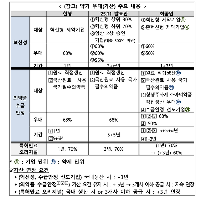 복지부는 지난해 11월 말 약가제도 개편 방향을 처음 공개한 이후 약 4개월간 후속 논의를 이어왔다. 국회 토론회와 산업계 간담회, 정책 심포지엄, 노동계 의견 수렴을 거쳐 최종안을 조율했다. 이 과정에서 약가를 일시에 인하하기보다 그룹별·단계적으로 조정하고 혁신형 기업 우대와 필수의약품 지원, 신약 신속 급여화 체계를 함께 담는 방향으로 가닥을 잡았다.