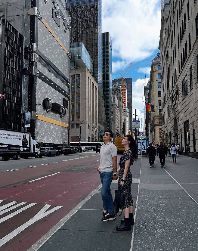 박시은은 시크한 뉴욕 스트릿 무드를 뽐냈고, 진태현은 캐주얼한 청바지와 티셔츠로 편안하면서도 훈훈한 비주얼을 완성했다.