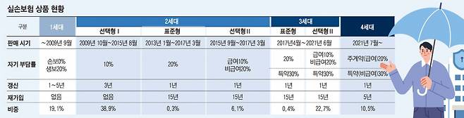 2세대 표준형이나 선택형Ⅱ, 3·4세대 가입자들은 5~15년마다 재가입을 해야 한다. 이들은 2028년부터 새로운 실손보험으로 순차적으로 갈아타게 된다. 그러나 정작 자기부담률이 낮아 보험사의 손해율이 높은 1ㆍ2세대 선택형Ⅰ 가입자들은 재가입을 할 필요가 없다.