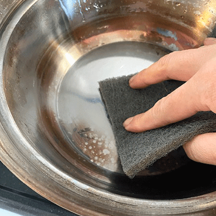 또한 식초 성분이 열에 의해 증발하지 않고 액체 상태로 남아 있으면서, 식힘 동안에도 잔여물 분해 작용을 계속 이어간다. 이때 부드러운 수세미나 나무 주걱으로 가볍게 긁어주면 별도의 세제를 사용하지 않아도 거의 모든 탄 자국을 제거할 수 있다. 단순하지만 과학적으로 설계된 세척 루틴이라고 볼 수 있다.
