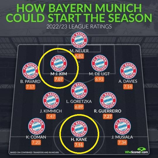 유럽 현지 매체들은 벌써 김민재를 바이에른 뮌헨 선수로 분류했다. 통계매체 ‘후스코어드닷컴’은 바이에른 뮌헨의 2023-24시즌 예상 라인업을 꾸려서 그래픽으로 만들었다. 11명 중 9명은 현재 바이에른 뮌헨 소속 선수다. 나머지 2명은 김민재와 해리 케인(토트넘)이다.