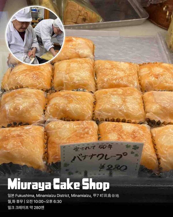 ‘50년의 맛’이라는 문구가 어울리는 노포 일본 맛집, ‘Miuraya Cake Shop’ 입니다. 바삭하게 구워진 바나나 크레페 안에는 달달한 밀크 크림이 한가득 들어 있는데요.
