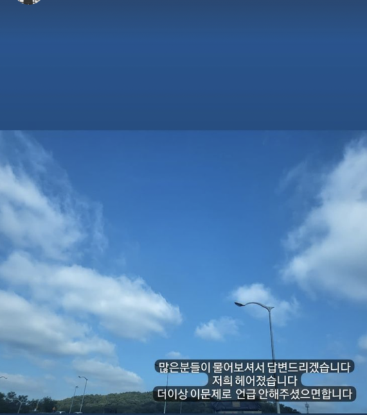 영식은 11일 오후 자신의 인스타그램 스토리를 통해 "많은 분들이 물어보셔서 답변드리겠습니다. 저희 헤어졌습니다. 더 이상 이 문제로 언급 안 해주셨으면 합니다"라는 폭탄 선언을 남겼다.