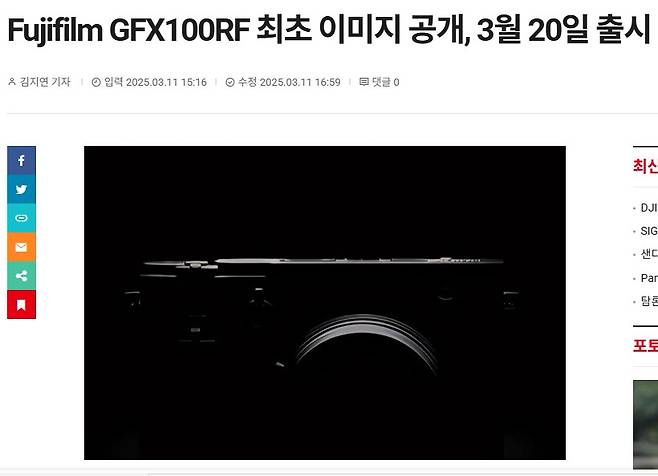 Fujifilm GFX100RF 최초 이미지 공개, 3월 20일 출시