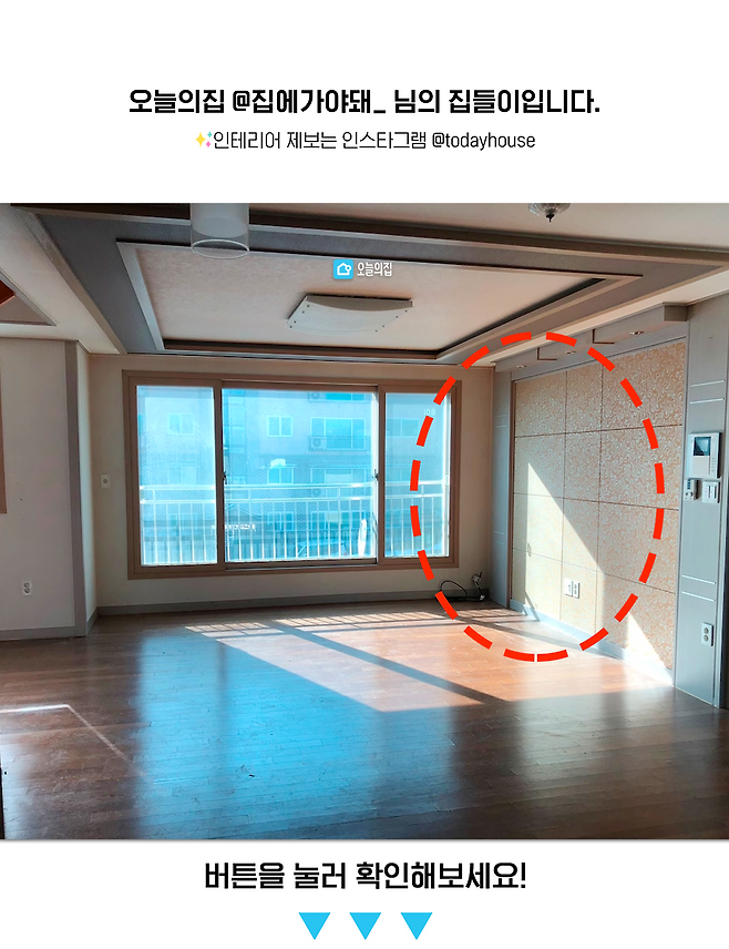 남서향을 바라보고 있어서 햇빛 맛집인 거실. 이 모습에서 아트월만 떼고, 샷시(새시)에 화이트 필름만 하면 예쁘게 꾸밀 수 있다는 확신이 들었어요.