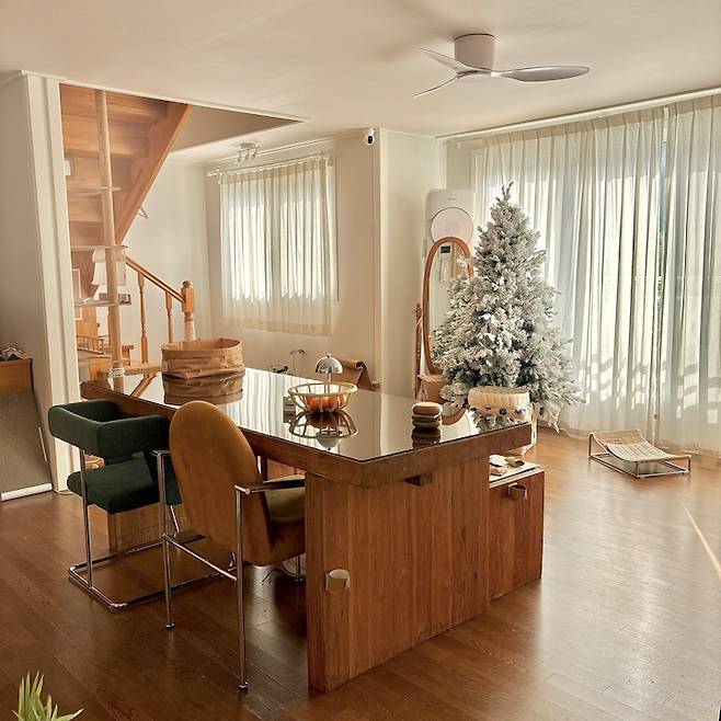 집 구조는 복층으로 되어있는데, 조금 재미있는 점이라면 원래라면 방이 되었을 공간에 계단이 있고, 거실과 이어져 있어서 일반적인 20평대 빌라보다는 훨씬 큰 거실을 가지고 있어요.