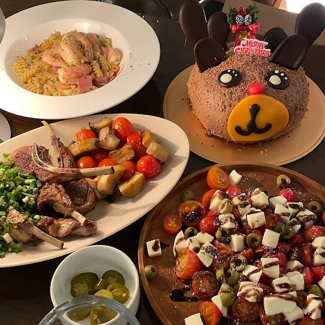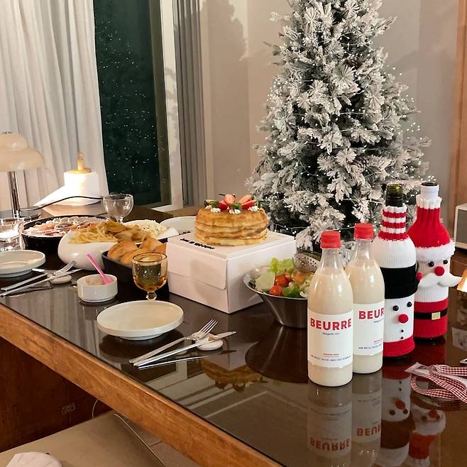 거실 테이블에서 친구들과 했던 연말 파티 모습도 있습니다.
