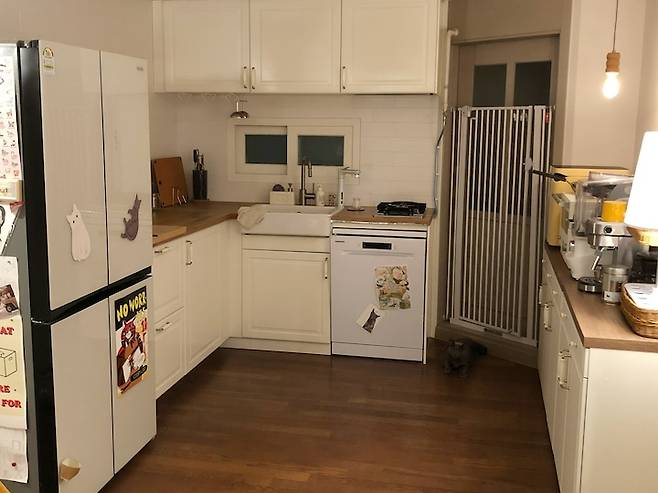 신혼집은 신축 아파트여야 한다, 역세권이어야 한다, 이렇게 말하는 사람들에게는 경기도 광주 산 아래 있는 이 빌라가 별로일 수 있겠지만, 우리에게는 평균 90점짜리 집이었어요. 저희가 정한 우선순위에 거의 들어맞았거든요. 제 상상대로 아이들 모두 하루에도 수십 번씩 총총거리며 왔다 갔다 해요. 정말 귀여워요.