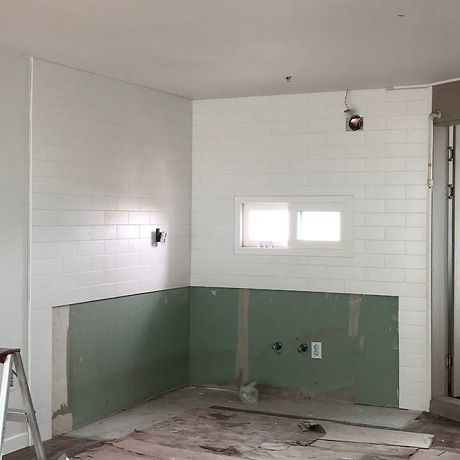타일은 덧방 시공 후 나머지는 모두 제거했어요.