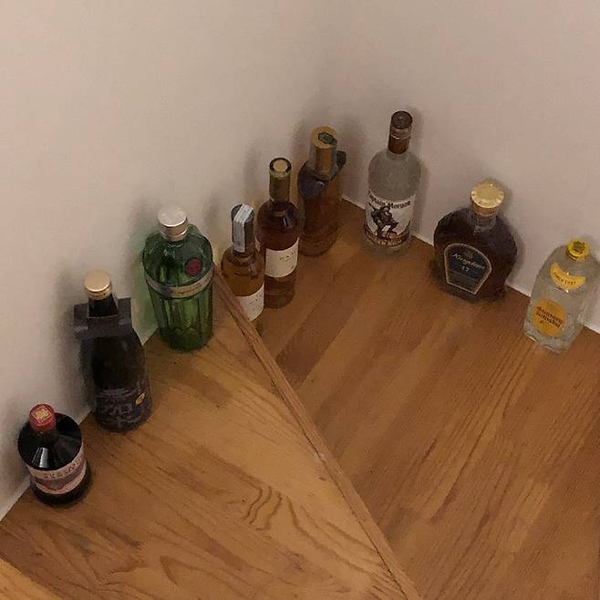 계단에 술병을 나란히 놓으니 와인 바 같은 느낌이 나서 좋더라고요 :)
