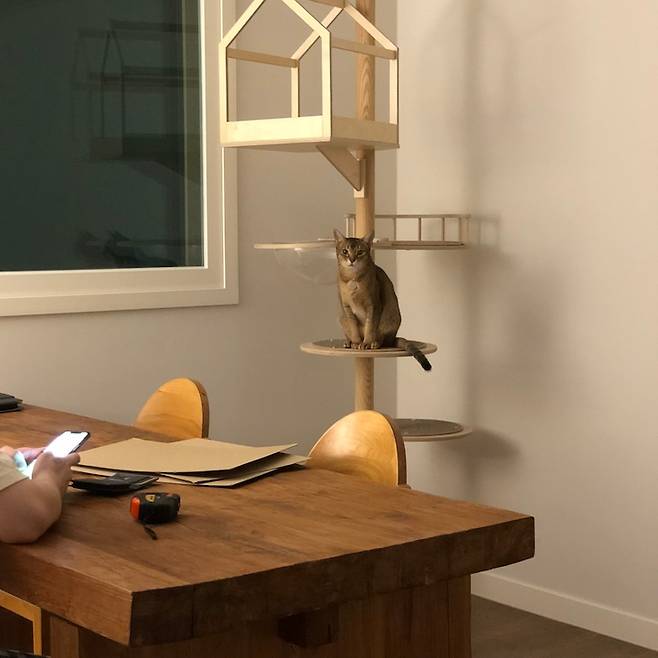 테이블과 고양이 캣타워가 덩그러니 있던 모습입니다.