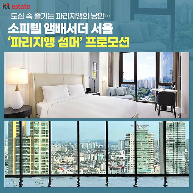 숙박시장에서도 기존에 ‘투투일레븐(오후 2시 체크인, 오전 11시 체크아웃)’을 깨고 24시간 투숙 혜택을 제공하는 스테이케이션 아이템이 지속적으로 인기를 얻고 있는데요. 대표적으로 소피텔 앰배서더 서울의 ‘파리지앵 섬머’ 프로모션은 24시간 투숙 혜택(오후 1시 체크인, 익일 오후 1시 체크아웃)을 제공합니다.