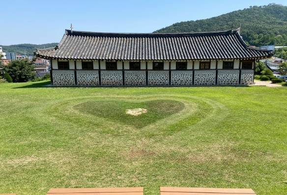 한옥 성당이라는 이색적인 여행지로 알려진 온수리성공회입니다. 온수리성공회는 영국인 주교 조마가 건축한 초기 서양 기독교 양식의 성당인데요. 한옥 건물 주위로 정원이 깔끔하게 관리되고 있어 새파란 잔디밭 위를 가볍게 산책하기 좋습니다.