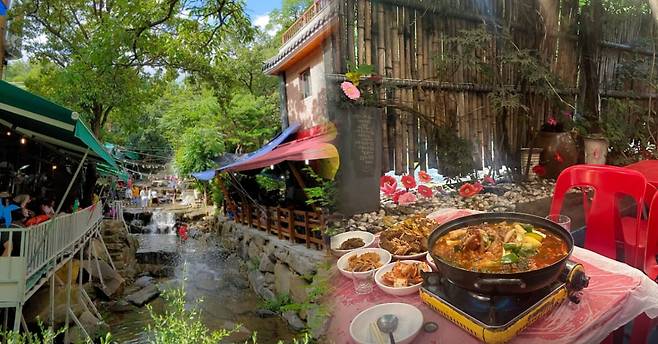 뽀얀 국물에 푹 삶은 오리와 닭 백숙이 깊은 맛을 경험하게 해주는 것으로도 잘 알려져 있는데요. 계곡 바로 옆에 위치한 테라스 좌석은 빠르게 차니 주말에 방문한다면 서둘러 방문하는 것이 좋습니다. 얕게 흐르는 계곡물에 발을 담그고 메뉴가 나올 때까지 더위를 식혀보세요!