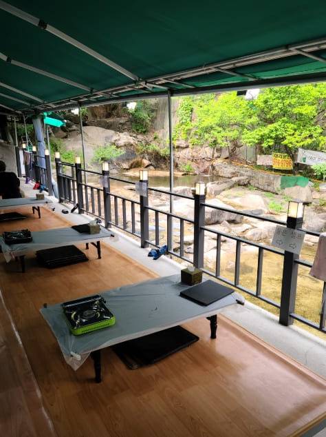 아이들이 발을 담그고 놀 수 있는 작은 계곡도 식당 바로 옆에 위치해있으며, 계곡이 내려다보이는 좌석도 마련되어 있어 가족단위로 방문하기에도 좋은 계곡 맛집입니다. 인근에 여러 식당이 있어 인파가 몰릴 때에는 주차가 매우 힘드니 차량방문은 고려해보심을 권장합니다.