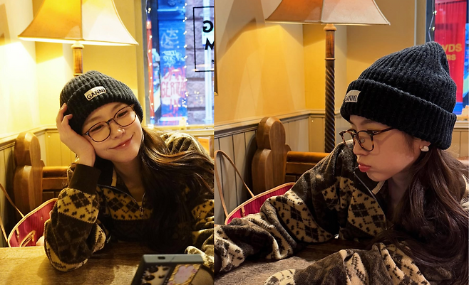 공개 된 사진 속 성해은은 브라운 컬러의 패턴이 있는 스트라이프 반 집업을 입고 그레이 컬러의 비니를 써서 포근한 겨울 스타일링을 선보였다. 안경 악세서리를 착용하고 긴 생머리 헤어스타일링과 내추럴한 메이크업을 하여 꾸안꾸 데일리룩을 선보였다.