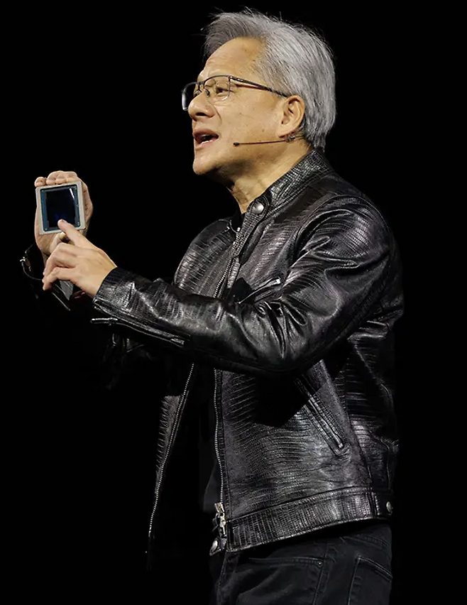 젠슨 황은 공식 석상과 프레젠테이션에서 항상 검은색 가죽 재킷을 착용하는데요.