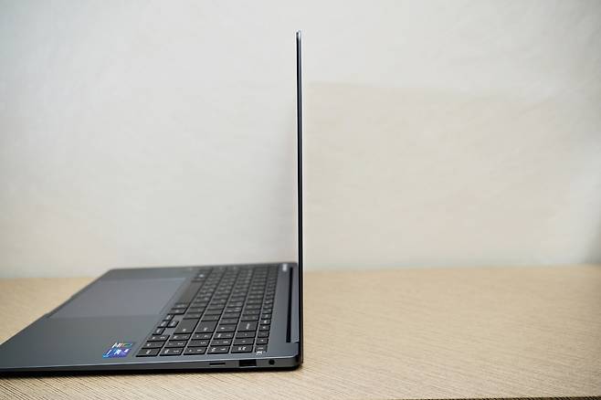 두께가 12.5mm로 정말 얇아 16인치 사이즈의 노트북 가방에 쏙 들어갈 수 있고 무게도 1558g으로 가벼운 무게로 이동이 잦은 사용자에게 적합합니다. 슬림하고 세련된 외관은 프로페셔널한 인상을 주며, 고급스러운 느낌을 더해줍니다.