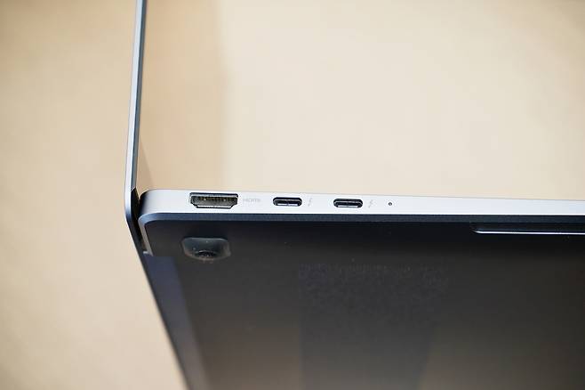 측면 포트는 썬더볼트4를 지원하는 USB-C 2개와 USB-A 3.2 1개, 3.5 오디오잭, 마이크로SD슬롯, 8K영상을 송출할 수 있는 HDMI 2.1포트(8K@60Hz / 5K/4K@120Hz)가 있습니다. 그 외 다양한 외부 기기와의 호환성을 보장합니다. Wi-Fi 6E와 Bluetooth 5.2지원으로 무선 제품들을 빠르고 안정적으로 연결 가능합니다.