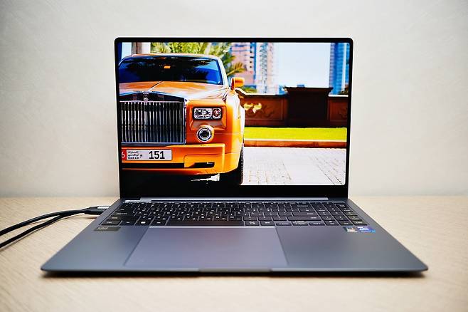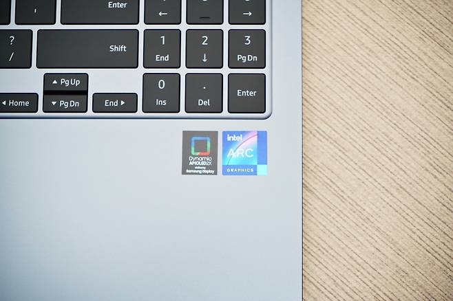 내부의 모습입니다. 기존 갤럭시북에서도 호평을 받았던 디스플레이가 더욱 업그레이드가 되어 출시되었습니다. Dynamic AMOLED 2X가 적용이 되어 아주 쨍한 색재현력과 명암비를 제공합니다. 특히 명암 구분이 극명한 HDR 콘텐츠를 감상 할 때 진가를 발휘하는데 3K 해상도까지 선명하고 생생한 화면을 즐길 수 있습니다.