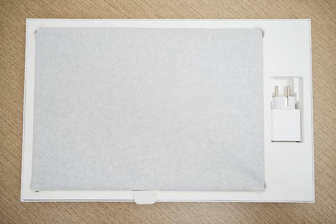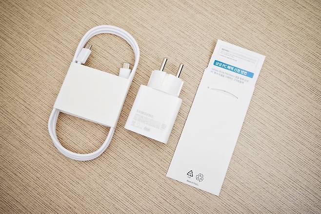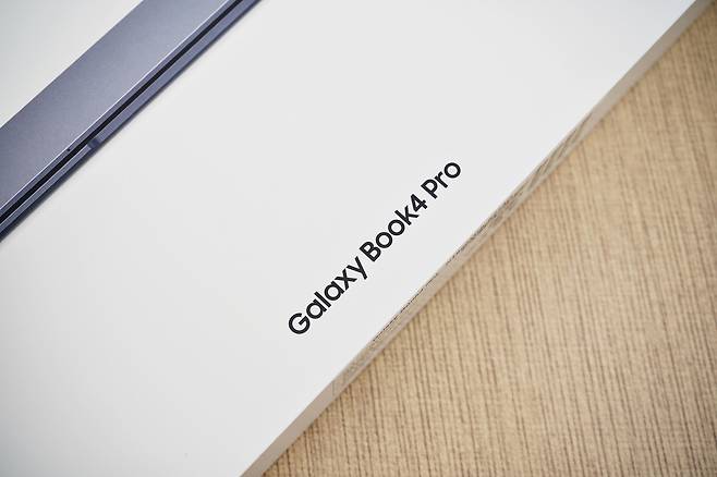 제품패키징은 상당히 깔끔하게 구성되어 있습니다. 갤럭시북4프로 본체와 어댑터, C to C 케이블, AS 및 안내카드로 심플합니다.