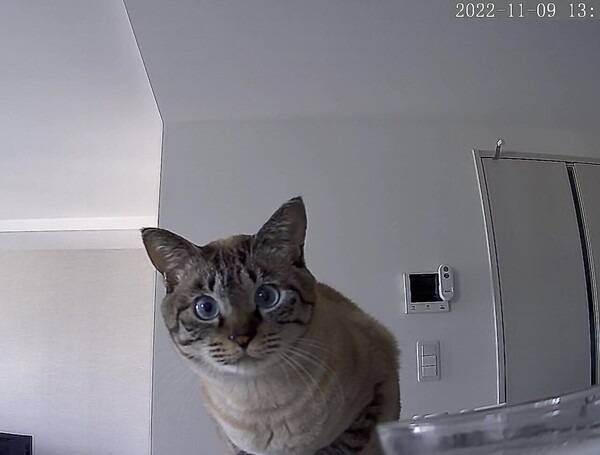 이에 평소 집안에 설치해 둔 CCTV를 통해 고양이를 확인해 보기 시작했는데요. 그러자 '모네'는 평소 정해진 시간에 식사가 나오지 않자 카메라를 향해 애처로운 눈빛으로 마치 "왜 밥이 안 나오지? 집사가 밥을 잊었나"라는 눈빛을 보내며 "나 배고픈데..."라는 사인을 보내기 시작했습니다.