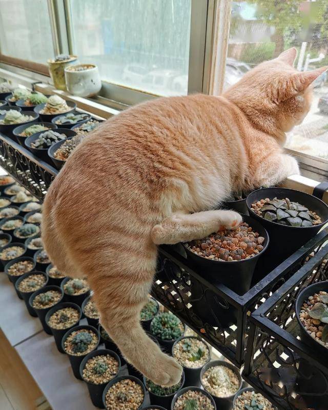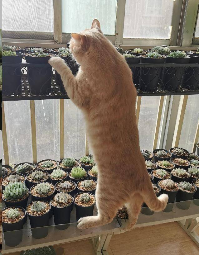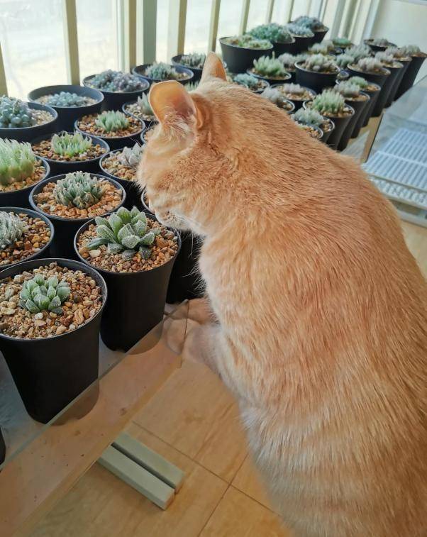 다육이의 종류가 다양하고 각기 다른 성장 형태를 가지기 때문에, 어떤 다육이가 발코니에서 자격이 있는지는 고양이만의 기준이 있습니다. 이 기준을 밝히지는 않지만, 고양이는 매우 엄격하게 다육이를 검사합니다.