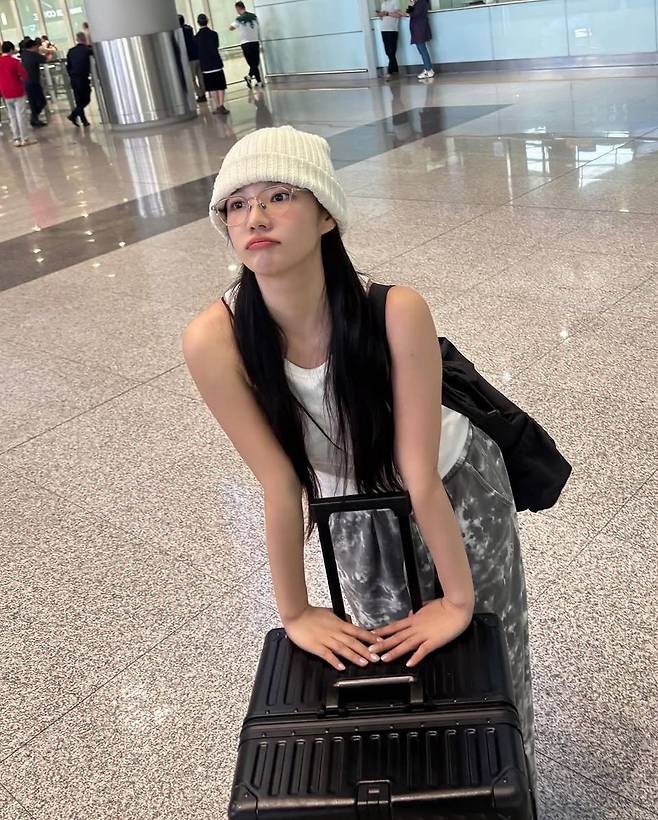 특히 눈에 띄는 것은 그녀의 캐리어 스타일링. 블랙 하드케이스 캐리어 위에 양손을 포개 얹은 포즈는 꾸밈없는 자연스러움을 담아내며, 보는 이들로 하여금 ‘나도 저런 여행룩 도전해보고 싶다’는 생각이 들게 한다. 등에는 블랙 백팩을 걸쳐 캐주얼한 무드를 완성시켰고, 전체 착장은 ‘꾸안꾸’의 정석으로 손꼽히기에 부족함이 없다.