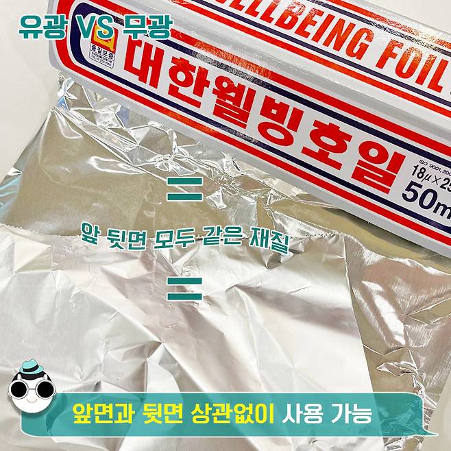 그렇다면 과연 쿠킹호일은 반짝이는 광택 면과 그렇지 않은 무광택 면 중에 어떤 걸 사용해야 할까요? 또 쿠킹호일은 불판 위에서 사용해도 괜찮을까요?