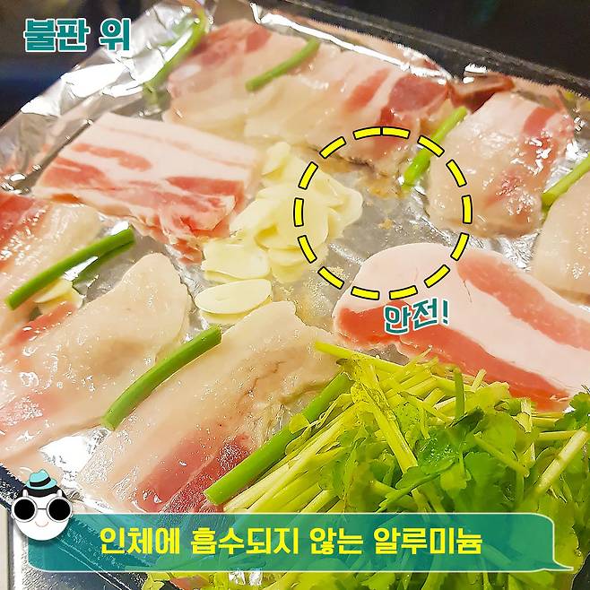 일각에서는 알루미늄 호일을 불판 위에 구우면 알루미늄 호일 내에 중금속 등이 녹아 스며들기 때문에 각종 질병에 취약하다고 주장해요. 또한 환경호르몬이나 각종 유해물질로 치매(?)에 걸린다는 주장도 있더라구요.