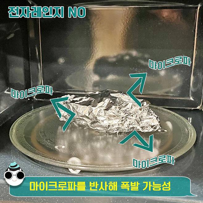 알루미늄은 절!대! 전자레인지에 돌리면 안돼요. 그 이유는 전자레인지가 음식을 데우는 방법에 있는데요~ 전자레인지를 데우기 시작하면 마이크로파가 나오고, 요 마이크로파를 받은 음식의 물 분자가 회전 운동을 하며 열을 내요. 즉 음식 내 수분이 진동하며 온도가 UP!