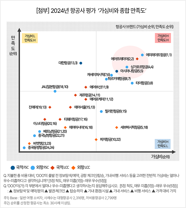 高가심비-高만족도 : 에어프레미아 외엔 모두 FSC