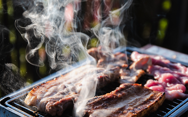 고기를 굽는 과정에서 기름이 고온에 닿아 타면서 연기와 함께 발암물질이 발생합니다. 연기 속 유해물질은 호흡기와 피부를 통해 체내로 들어오고, 탄 고기를 그대로 섭취하면 위장과 대장까지 영향을 미칩니다.