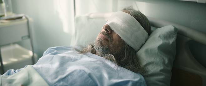먼저 손상된 각막을 보호하기 위해 안대를 만들어 차는 빅터의 비장한 모습에 생존을 위한 의지가 엿보인다.