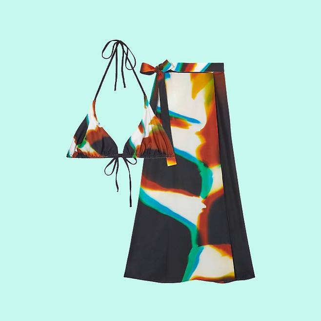 코스 프린티드 트라이앵글 비키니 탑 4만9천원, 프린티드 맥시 랩 스커트 25만원
